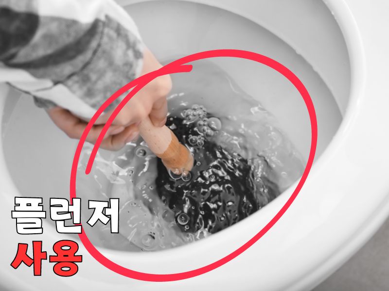 플런저를 사용할땐 강하게 압축한 공기와 물로 이물질을 밀어내는