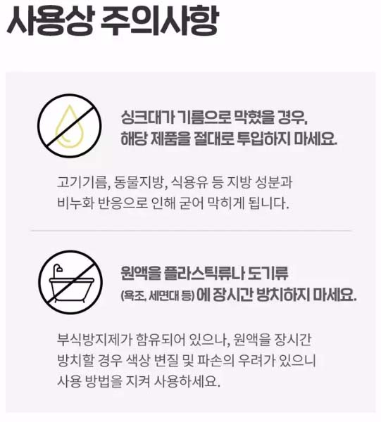 배관 전용 약품들을 사용하는 경우에는 각 제품 뒷면에 나와있는 제품별 사용 안내 방법을 잘 확인하여 용도에 맞게 사용해야 합니다.